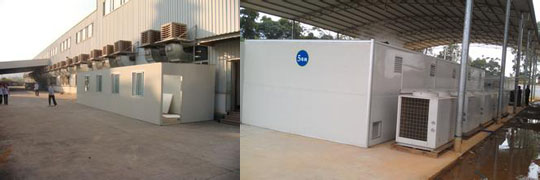 庫氏皮草20臺蒸發型冷氣機安裝完畢并正常運行,_高溫熱泵烘干皮草安裝完畢并正常運行。